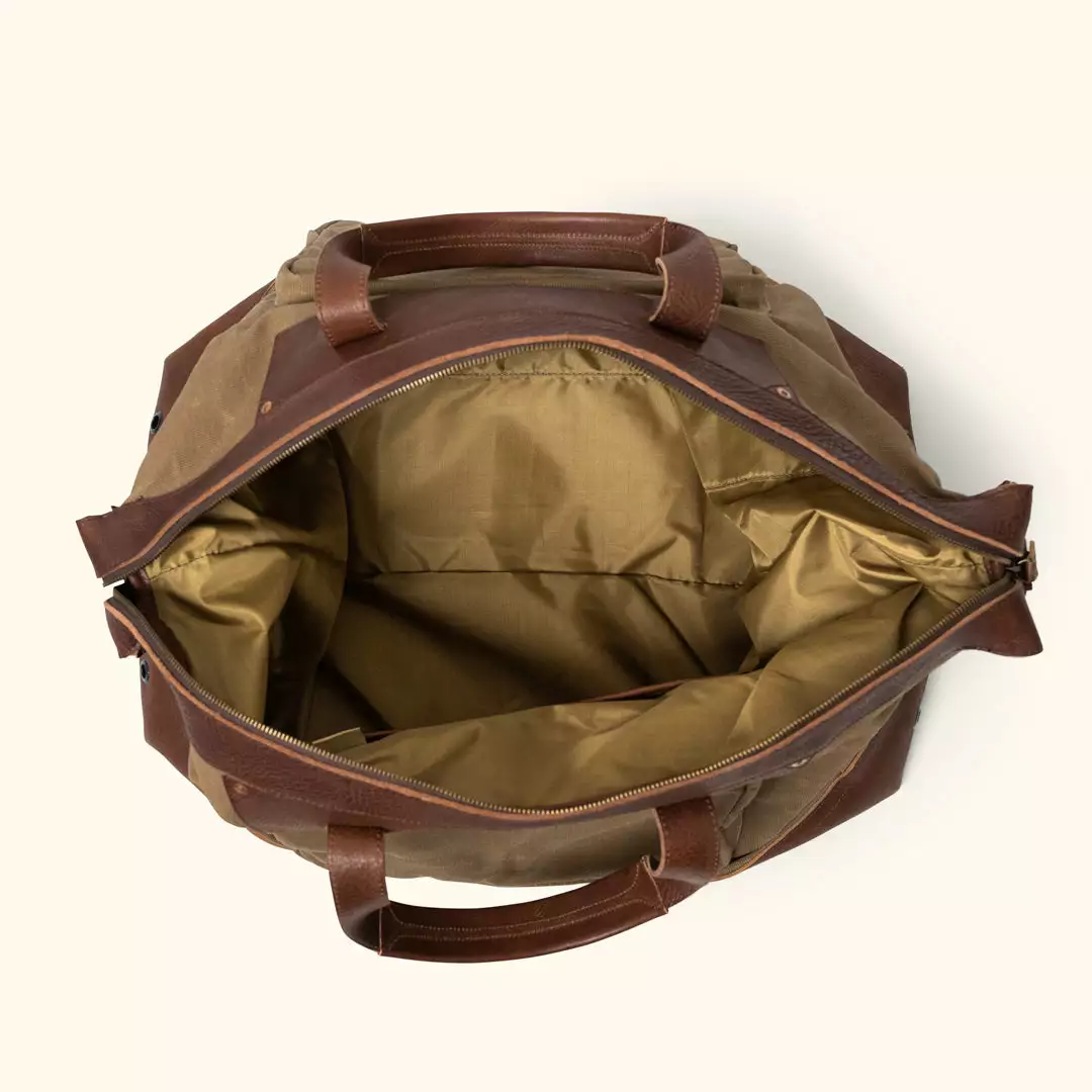 Buffalo Jackson Trading Co. Dakota Waxed Canvas Oversized Weekend Bag | Field Khaki W/ Chestnut Brown Leather
