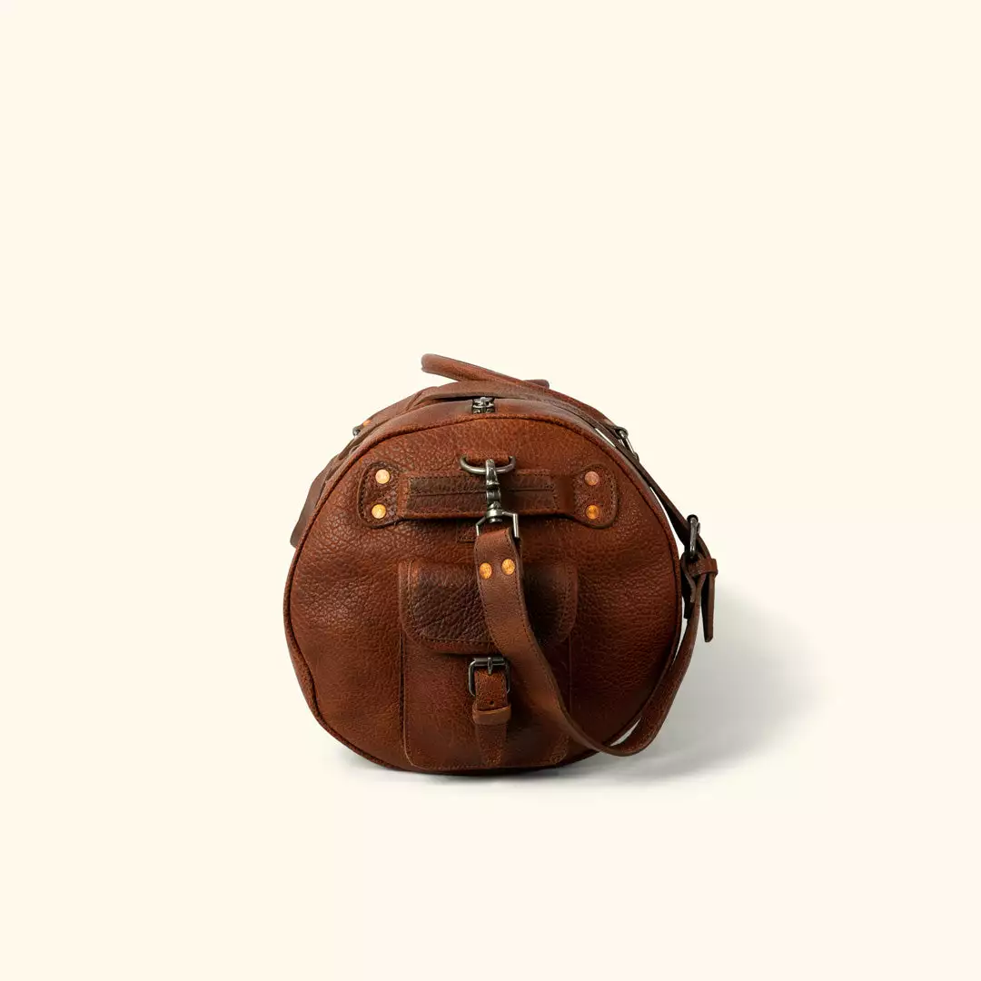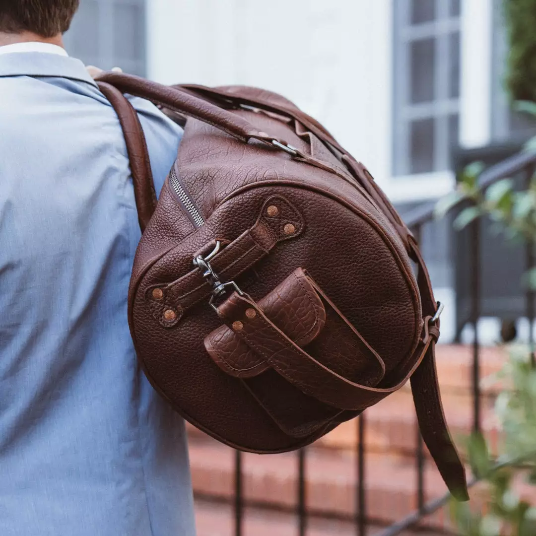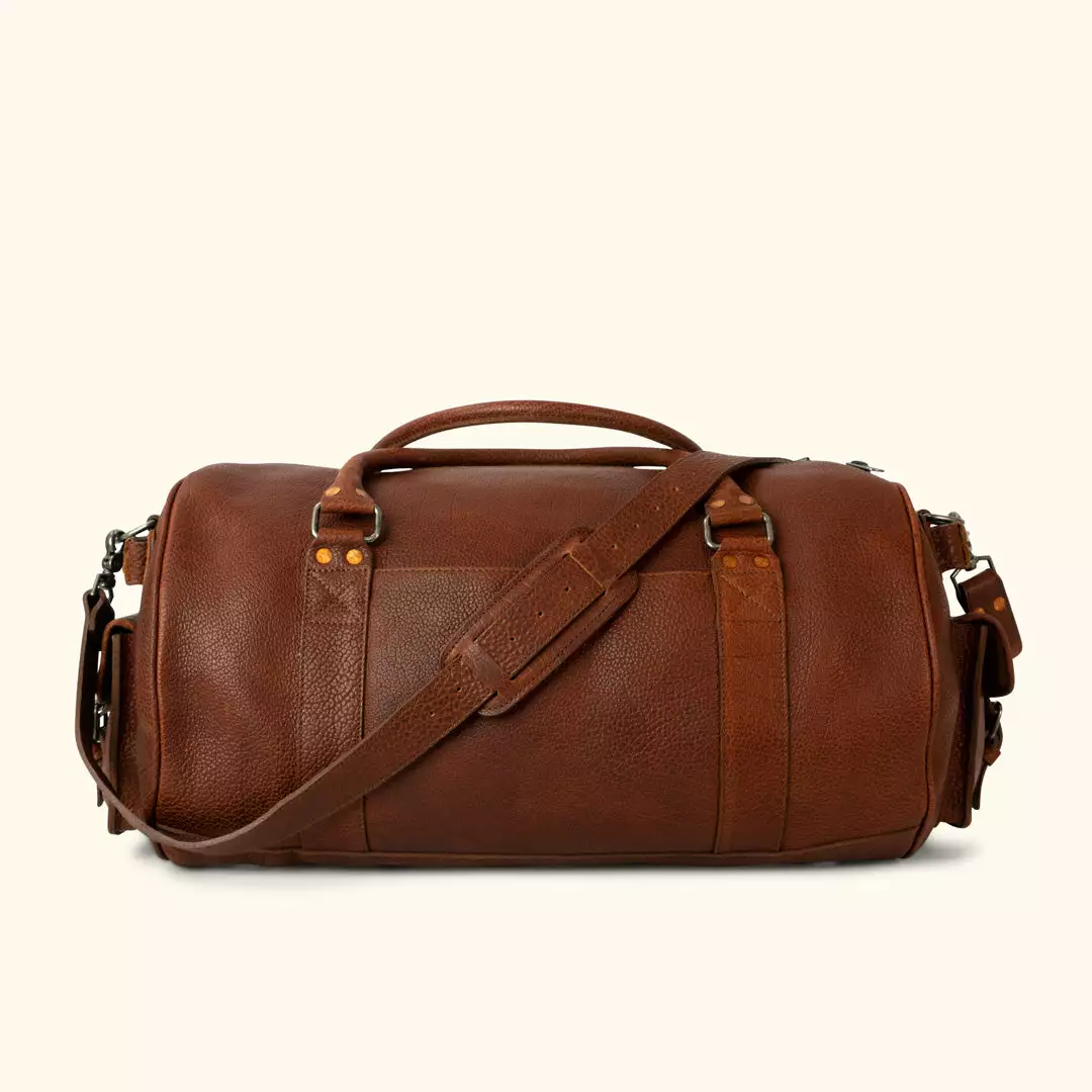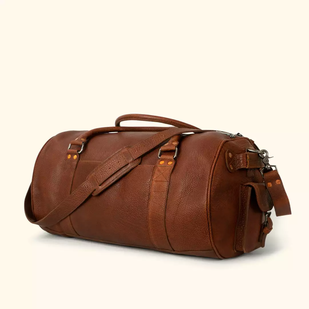 Our Ryder Reserve Bison Leather Duffle Bag is about as far from mediocre as one could get. Masterfully crafted with copper rivets, antique nickel hardware, and let’s just say pockets and compartments galore, this premium bison bag takes the word “duffle” to a completely new level. When you need a bag you can rely on, you need a leather you can rely on; we chose bison leather for its durability and sheer elegance. I carried mine the weekend I took Gloria to the Poconos. As soon as she saw it, she stopped and said, “Top-drawer, really top-drawer.” I said, “I know, right?”