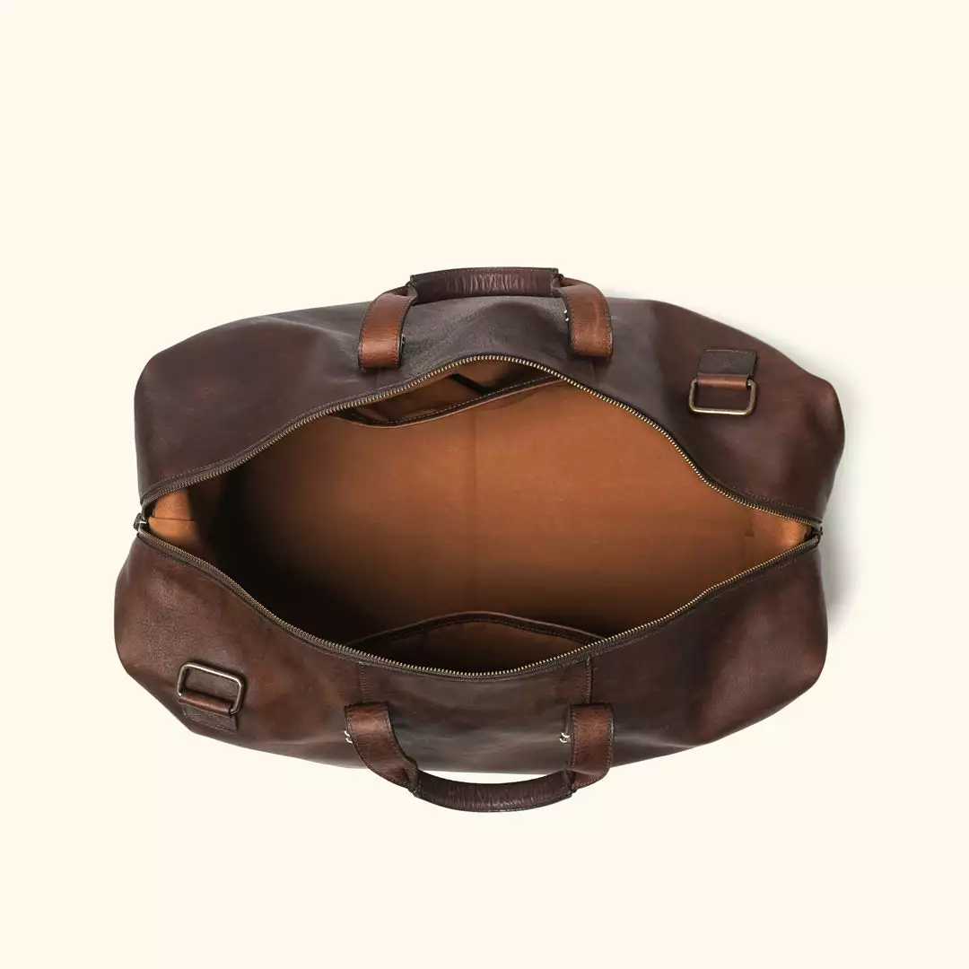 The Walker Collection Weekend Bag. A tough-as-nails weekender with minimal hardware and maximum space so you can carry everything you need for those three-day windows of adventure. Built from full-grain leather and offered in an aged oak color, this vintage leather bag oozes our dedication to quality. The Walker Weekend Bag can’t wait for Fridays and hates to see Mondays come.