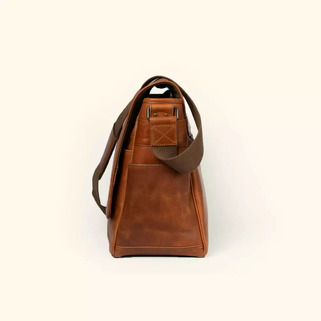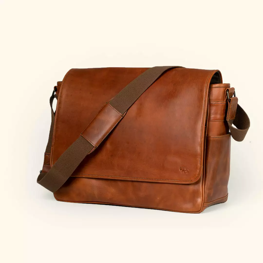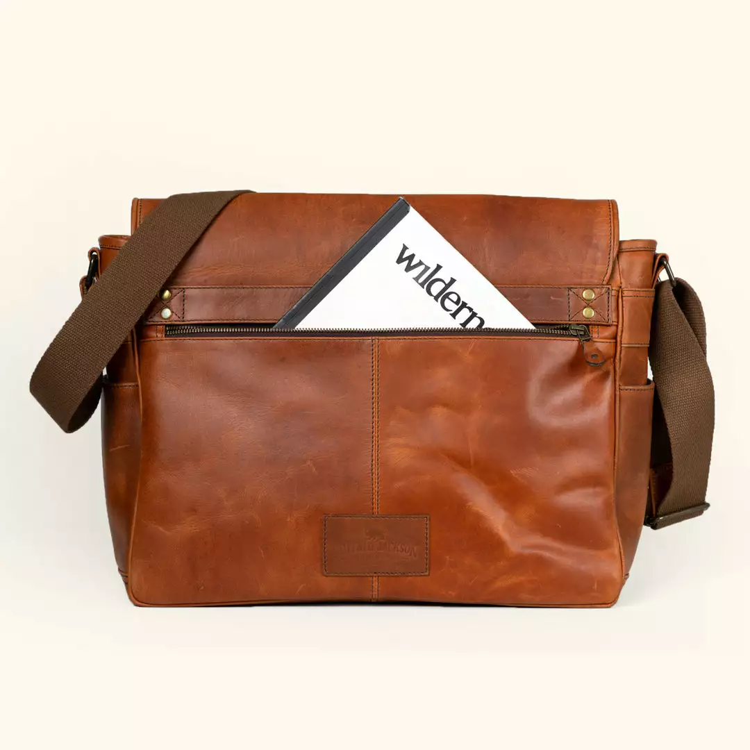 Same top-grade water buffalo leather complemented by brass and iron hardware, this one is able to accommodate laptops up to 17”. It has room for it all, or pretty damn close. This large messenger bag is for those moments when a voice of authority tries to hem you in because of potentially less-than-desirable consequences to living. Carrying this bag sends a clear message: “Sorry, I’m going large.”