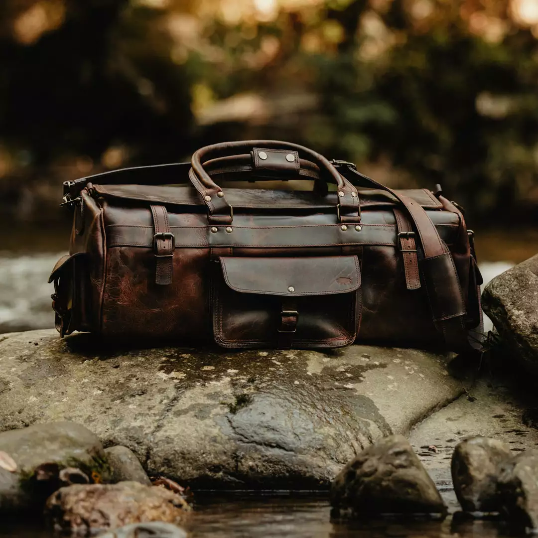 Buffalo Jackson Trading Co. Roosevelt Buffalo Leather Travel Duffle Bag | Dark Oak